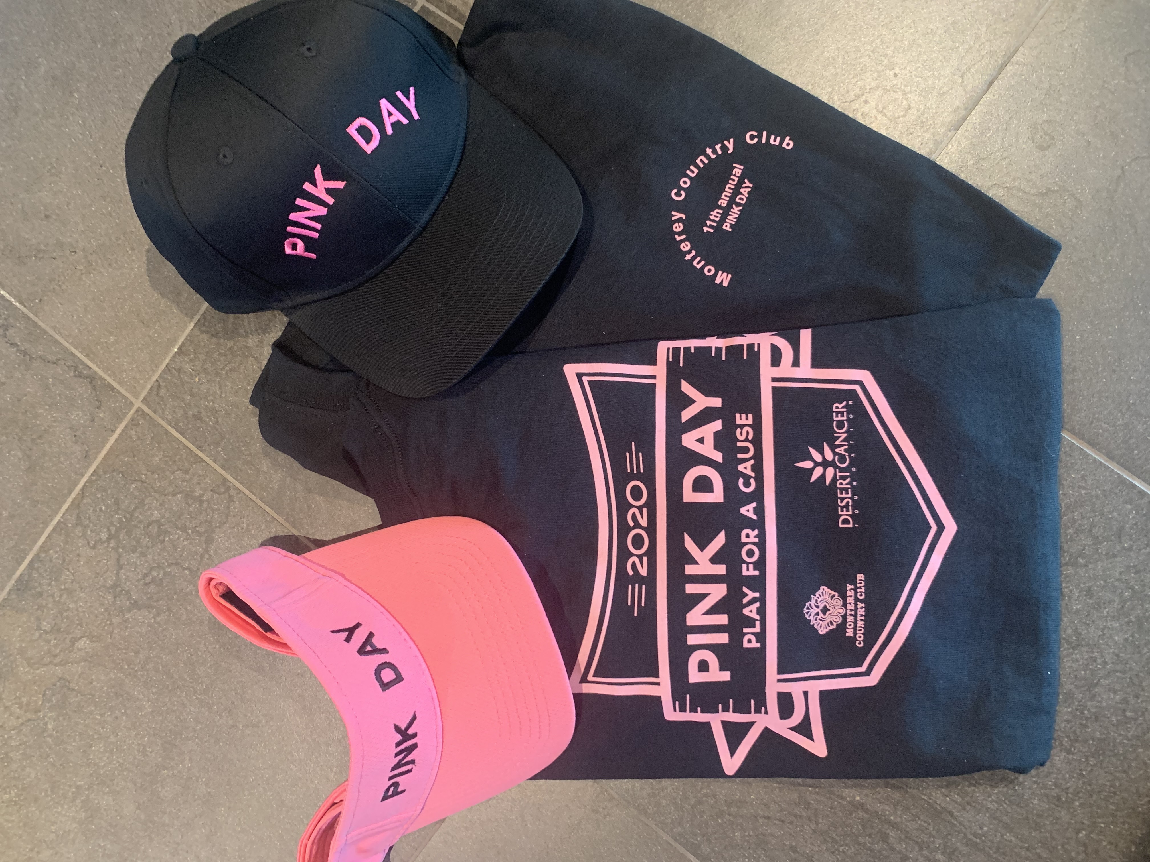 Pink Day Visors and baseball caps will sell for $15 each.